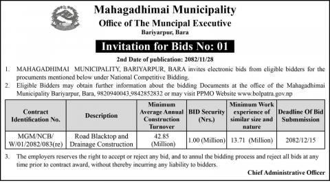 सडक कालोपत्रे र नाला निर्माण गर्ने सम्बन्धि बोलपत्र आहवान ।