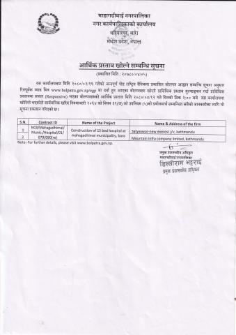 » आर्थिक प्रस्ताव खोल्ने सम्बन्धि सूचना ।