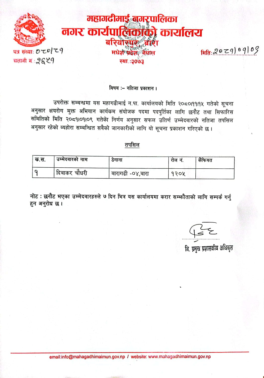 » क्षयरोग मुक्त अभियान कार्यक्रम संयोजक पदको नतिजा प्रकाशन सम्बन्धमा ।