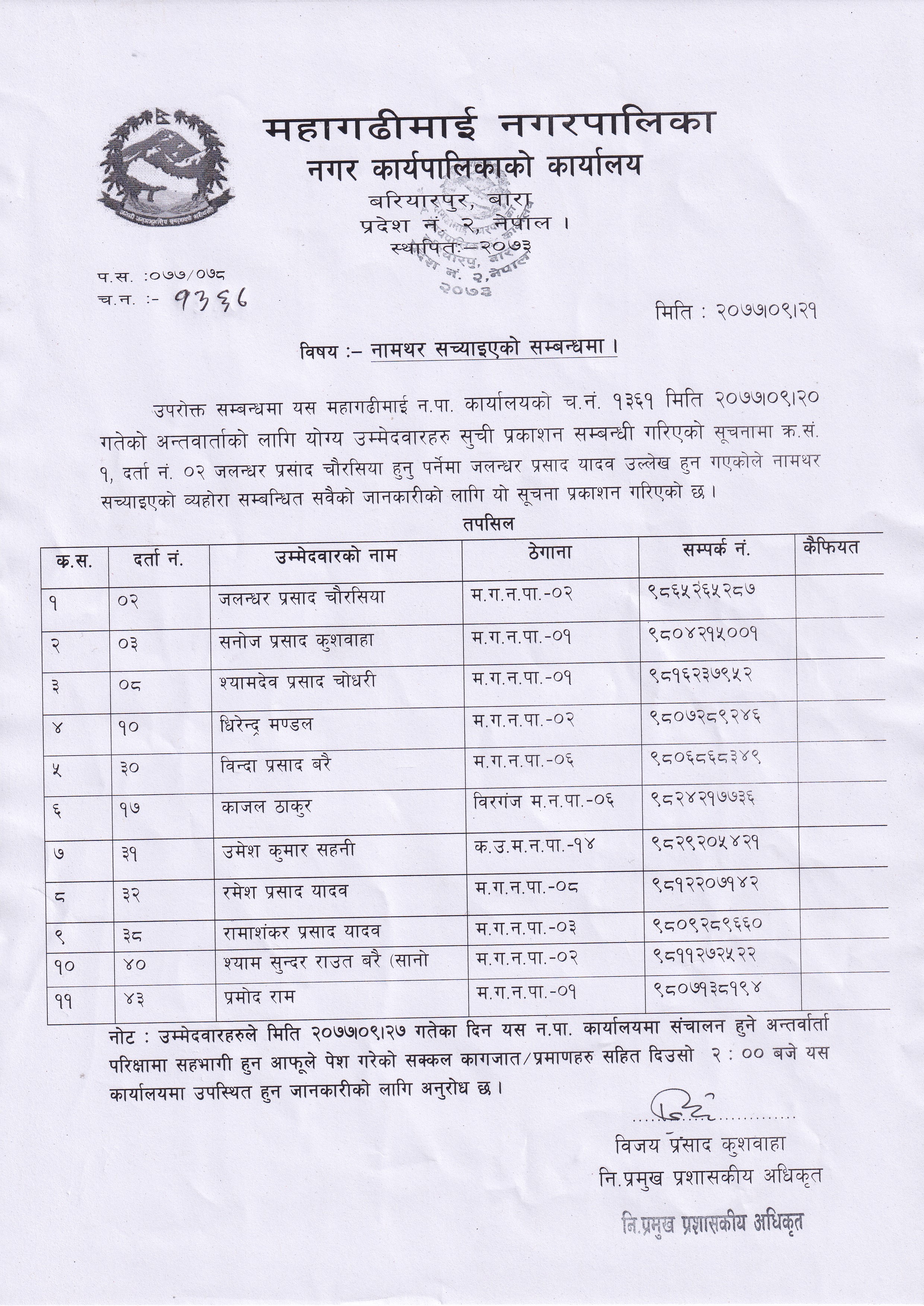 मितिः२०७५।०३|३२ गते योजना छनोट बजेट सिलिङ्ग वडाहरुमा पठाइएको छ।
