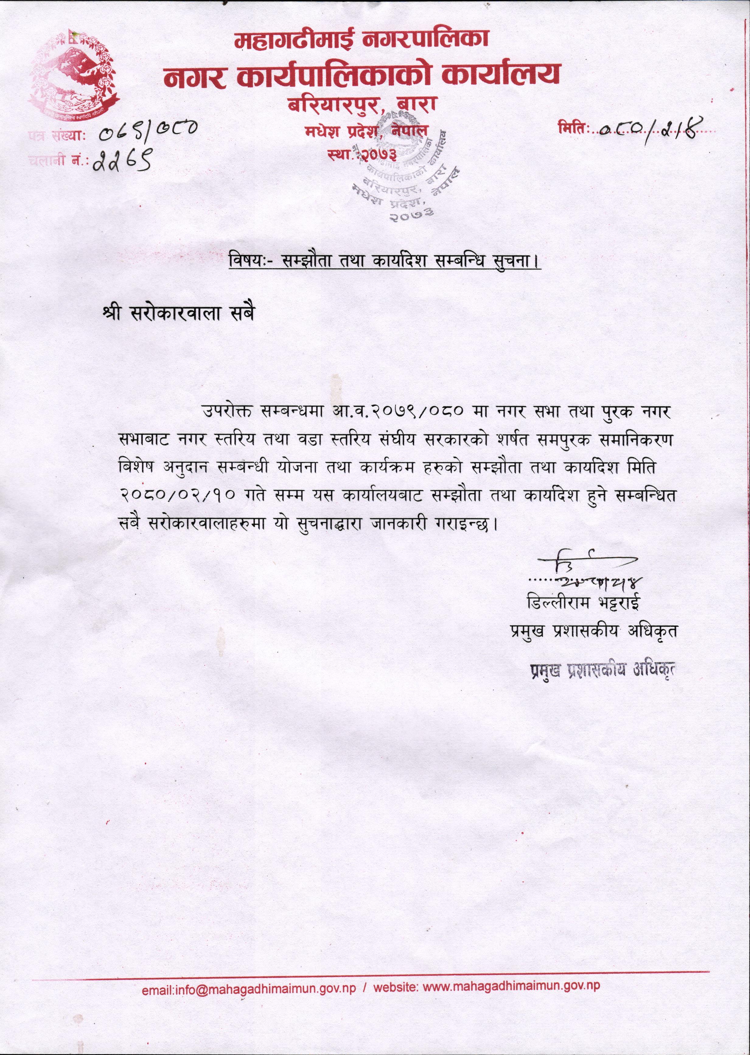 मितिः२०७५।०३|३२ गते योजना छनोट बजेट सिलिङ्ग वडाहरुमा पठाइएको छ।