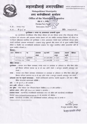 बोलपत्र आह्वान सम्बन्धी सूचना।