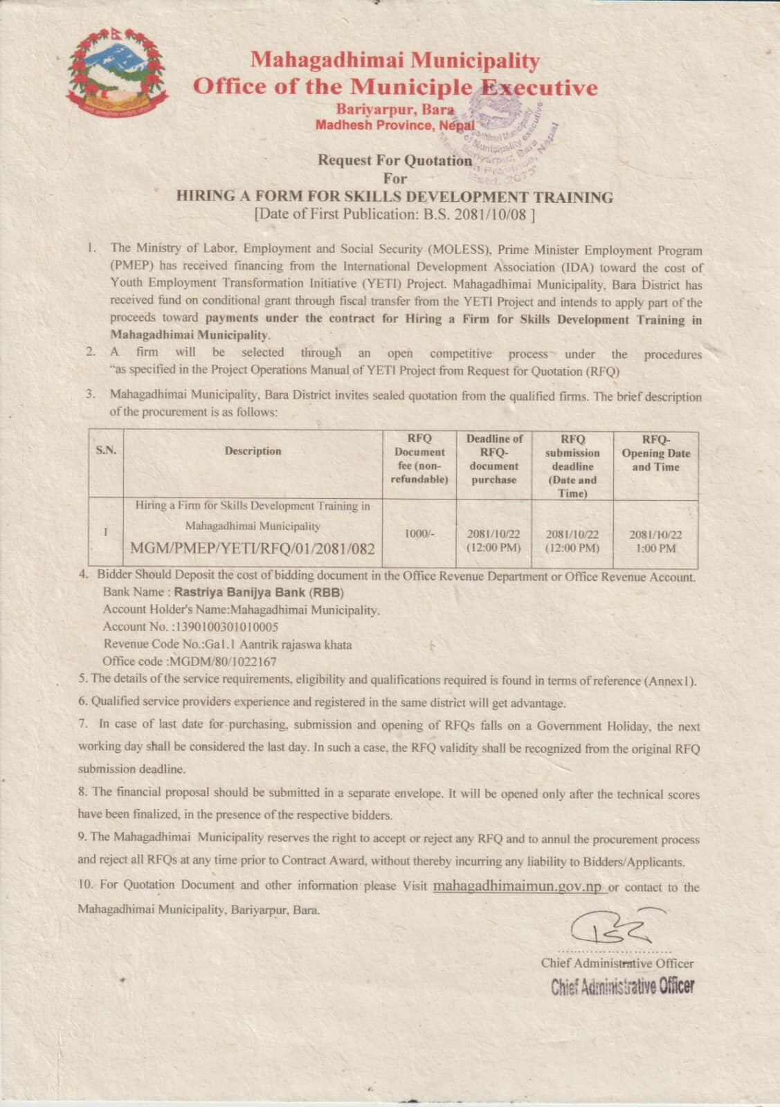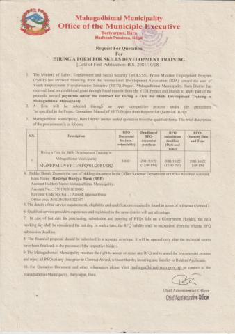 बोलपत्र आह्वान सम्बन्धी सूचना।