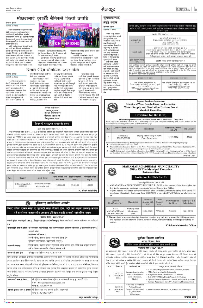 सार्वजनिक खरिद/बोलपत्र सूचना