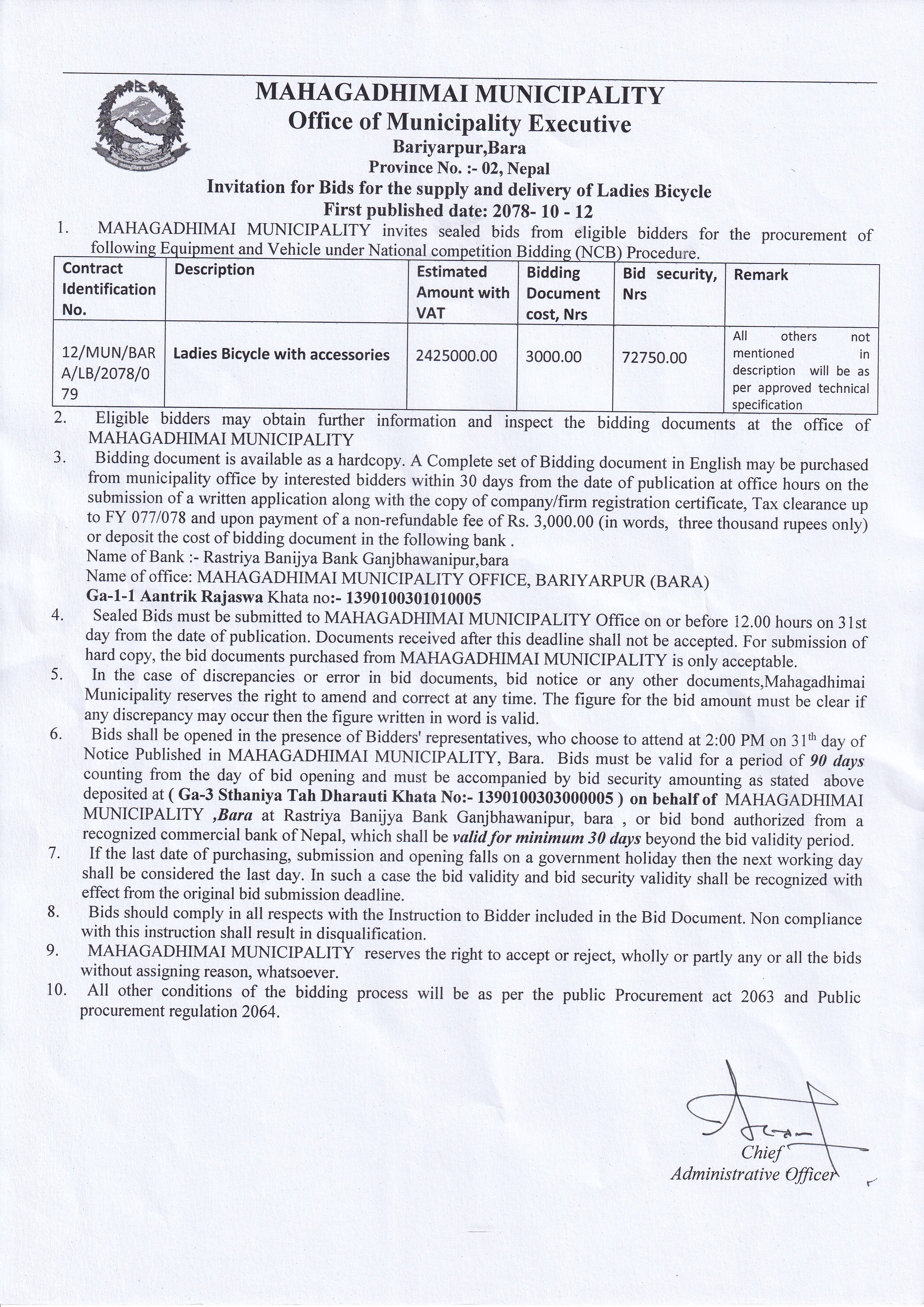 बोलपत्र आह्वान सम्बन्धी सूचना।