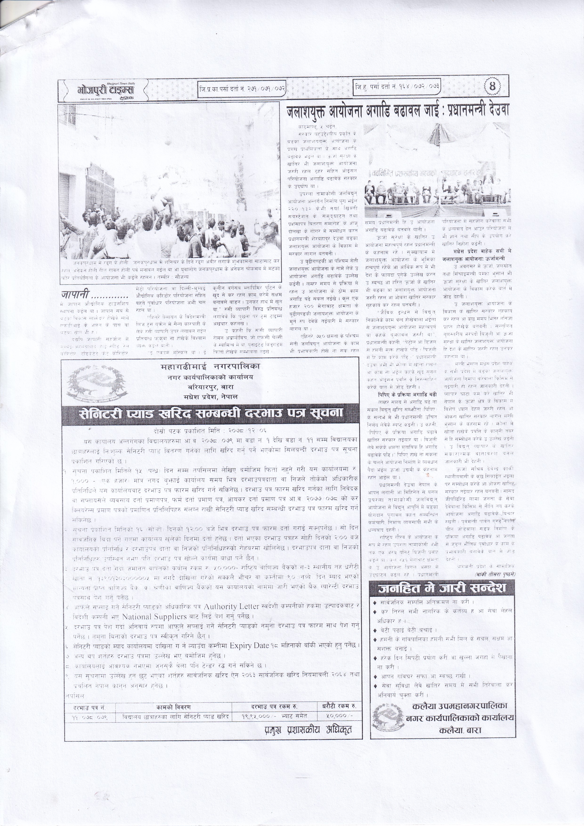 » सेनिटरी प्याड खरिद सम्बन्धि दरभाउ पत्र सूचना ।