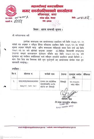 सेनेटरी प्याको आश्य सम्बन्धि सूचना ।
